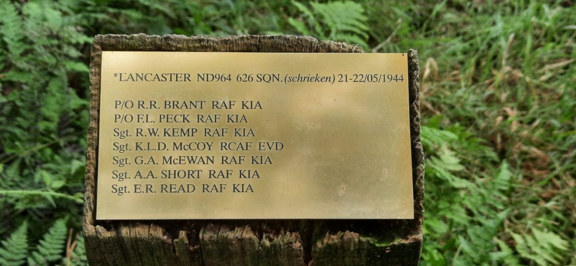 - Gedenkplaat voor bemanning Lancaster III ND964 626 Sqn RAF, Varewinkel-Herselt