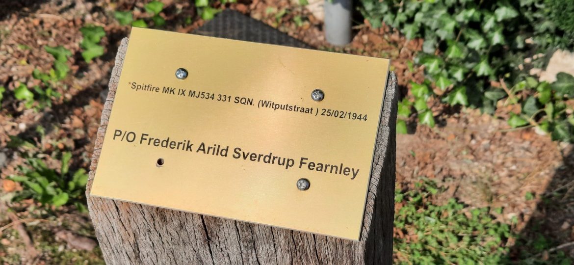 - Gedenkplaat voor P/O Fredrik Arild Sverdrup Fearnley, Spitfire IX MJ534, 331 Sqn RAF, Herselt