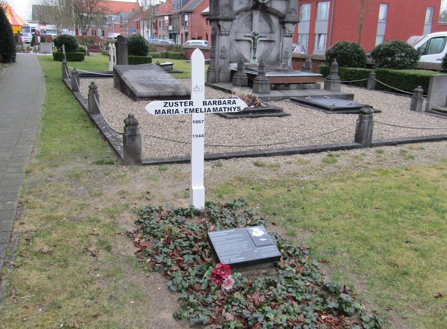 | V1   Op het kerkhof van Gooreind (Wuustwezel) rust Zuster Barbara on een eenvoudig wit houten kruis. Ze was het slachtoffer van de inslag van een V1 en overleed aan haar verwondingen op 27 november 1944. In 2016 plaatste de gemeente, op initiatief van de NSB Gooreind, een gedenkplaat op haar graf.