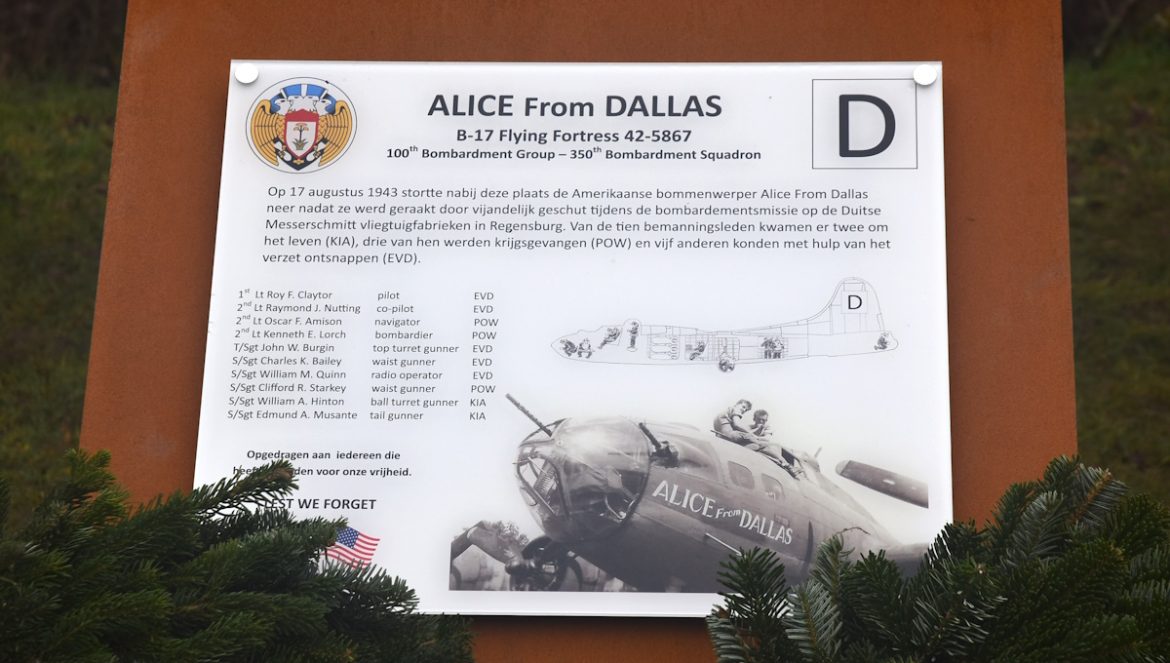 100 BG, B-17  Op 21 september 2024 werd door de organisatie Erfgoed Noorderkempen in samenwerking met de gemeente Kasterlee een monument voor de B-17G 42-39799 'Dobie' ingehuldigd. 100 BG, Schweinfurt-Regensburg  Op 26 januari 2025 werd onder grote belangstelling te Genk een gedenkteken ingehuldigd voor de bemanning van Alice from Dallas. Deze B-17 van de 100th Bombardment Group nam deel aan de Schweinfurt-Regensburg missie op 17 augustus 1943. Daniel Kinet  Luchtvaartpionier Daniël Kinet was in België houder van de tweede licentie voor piloot. Daniël Kinet zou echter het eerste slachtoffer worden van de Belgische luchtvaart. Hij stortte neer te Gent op zondag 10 juli 1910 (zie databank, gedenksteen op de Singel.) 300 Sqn, 301 Sqn, 305 Sqn, 308 Sqn, 317 Sqn, Lancaster, Mosquito, Spitfire, Wellington  De Poolse Militaire Begraafplaats te Lommel is de enige in België. Er werden 257 Poolse gesneuvelden begraven, voornamelijk van de 1ste Poolse Pantserdivisie maar ook ongeveer Poolse 25 piloten en bemanningsleden die in de Royal Air Force dienden tijdens de Tweede Wereldoorlog. Voor zover we kunnen nagaan werd de begraafplaats ingehuldigd op 1 november 1947.  Dit mooi gerestaureerd gebouw tussen de Twaalfapostelenstraat en de Kortrijksesteenweg was tijdens de Eerste Wereldoorlog een opslagplaats ("foeragemagazijn") en tijdens de Tweede Wereldoorlog een Duitse herstelplaats voor vliegtuigmotoren. Kogelgaten in een zijmuur werden tijdens de restauratie niet opgevuld, vermoedelijk dateren ze van de aanval Bodenplatte. Aan deze kant van het vliegveld stonden Britse toestellen geparkeerd, waarschijnlijk werden ze tijdens die nieuwjaarsdag van 1945 onder vuur genomen door de Luftwaffe. Info Piet Dhanens (23 juni 2018): 10 Sqn, 108 Sqn, 204 Sqn, 7 Sqn, 82 Sqn, AW FK8, CWGC, DH9, RAF RE8, Sopwith Camel  CWGC Kezelberg Military Cemetery telt 147 graven uit de Eerste Wereldoorlog waarvan een van het Chinese Labour Corps. Daarnaast werden er ook veertien Duitse gesneuvelden begraven. Op de begraafplaatsen werden zes militairen van de RAF begraven. André Schaepdrijver, Etienne Battaille, Raymond Holvoet, Robert Deprez, Roger Carrette, SAS, SOE  De gedenkmuur 'Aan de slachtoffers van Oorlogsgeweld' van Kortrijk herinnert aan de 'Gesneuvelde militairen 1914-1918', 'Burgerslachtoffers van de bombardement Kortrijk in 1943 en 1944', 'Gesneuvelde militairen 1940-1945' en 'Gevallen militair in Humanitaire Opdracht'. In dezelfde muur is de gedenksteen opgenomen ter nagedachtenis aan de Kortrijkse gesneuvelde Parachutisten SAS-SOE. |